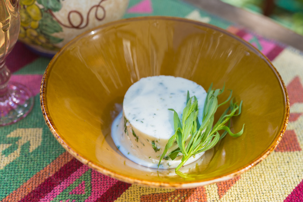 Ингредиенты (на 2 порции): 600 мл мацуна, 100 г тархуна, 20 г желатина, 100 г сахарного песка, сироп из шелковицы дошаб (или любой другой сироп) для подачи.
