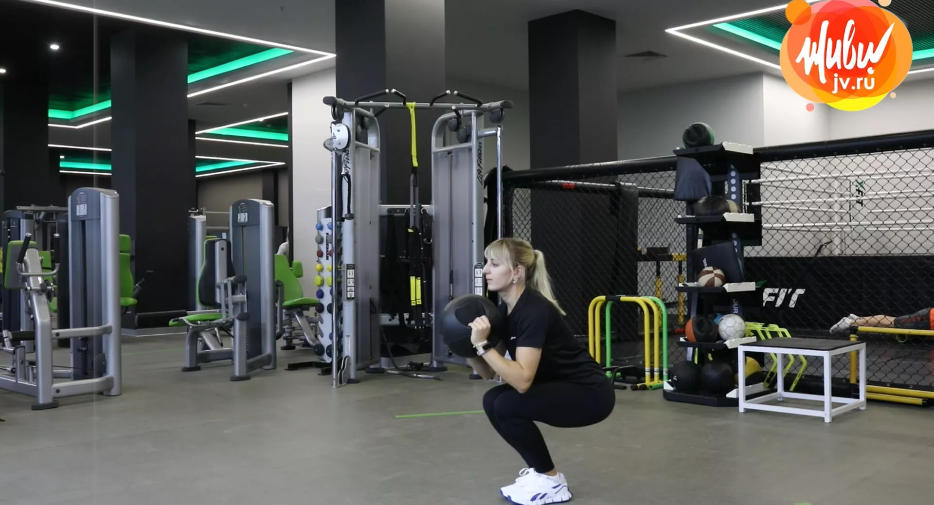 От выбранного оборудования зависит то, как будет распределяться нагрузка. «Если мы возьмем гантели, то вряд ли сможем положить их на спину, — приводит пример Дарья Арькова. — Скорее, мы будет держать их или гирю (кеттлбелл) перед собой, и в результате в большей степени включатся в работу плечи и руки».