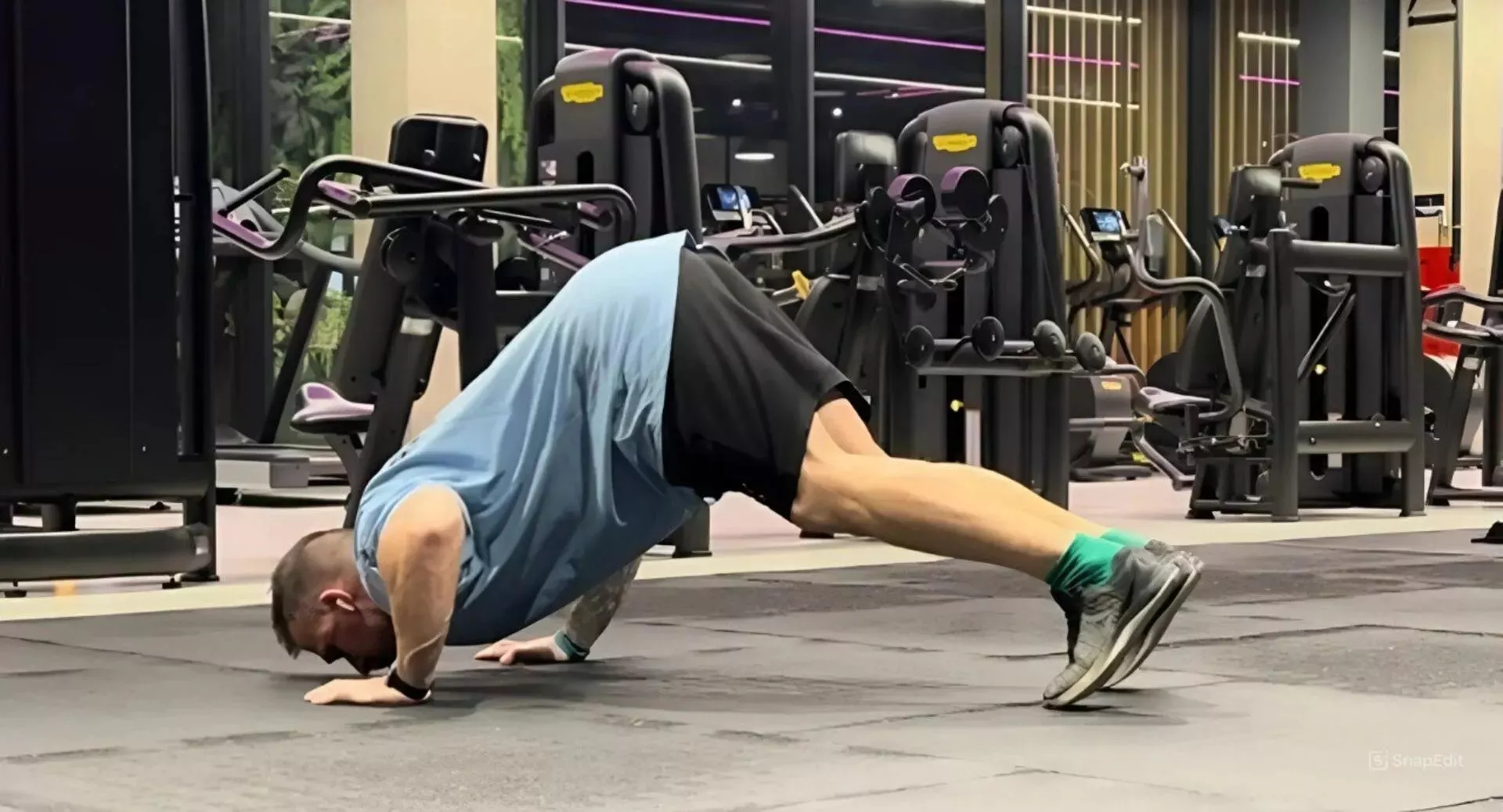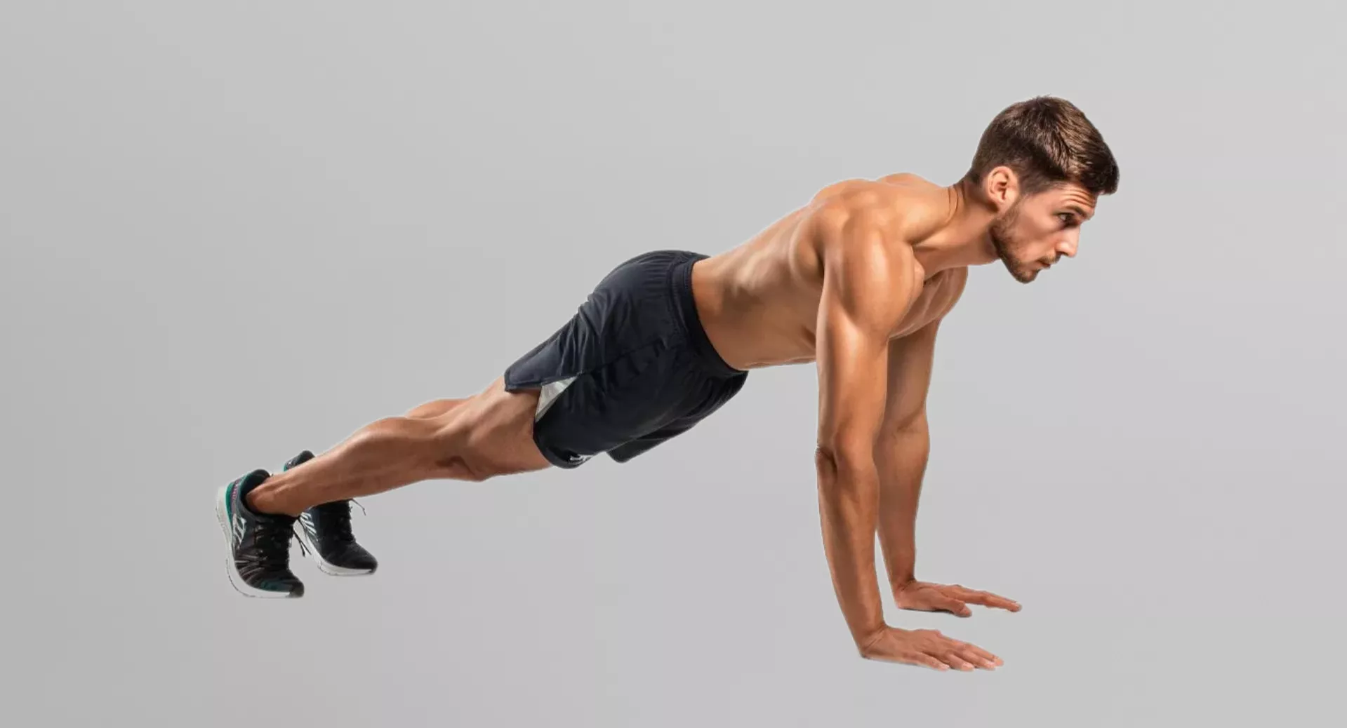 - Выполните следующее отжимание, затем левой рукой коснитесь правого плеча.