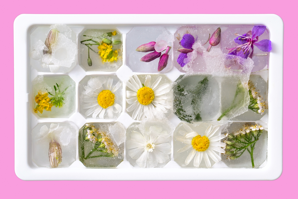 Сделайте лед из отвара липового цвета, мяты перечной, мелиссы, ромашки, тысячелистника, розы, шалфея или укропа.