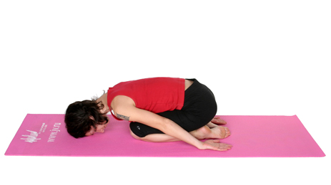 4. Затем отдохните в наклоне или позе ребенка: сядьте на колени, вытяните руки, наклонитесь вперед и расслабьтесь.