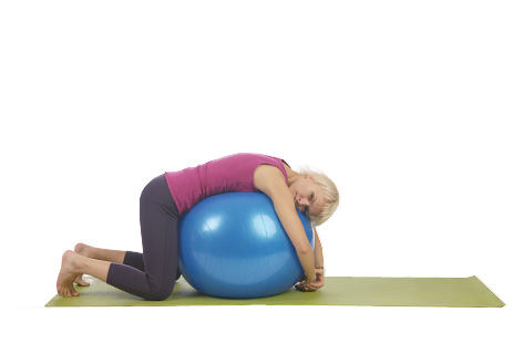 Как выполнять. Согните ноги в коленях и обнимите мяч. Поверните голову в сторону и расслабьтесь. Удерживайте это положение 1-2 минуты.