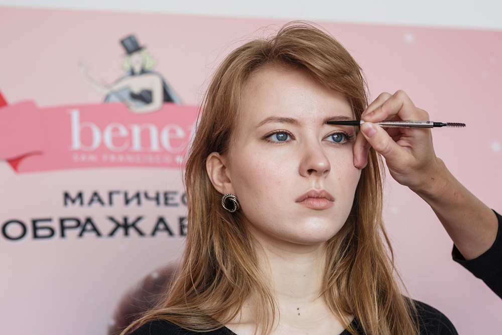 Великолепные брови с потрясающим изгибом — для особых случаев, когда нужно выглядеть особенно ярко, выделяться из толпы. «Выразительная широкая форма бровей с акцентом на изгиб «открывает» глаза и создает эффект легкого лифтинга, — говорит Мария Махаева. — Нам понадобятся тени и воск для бровей, кисть со скошенным кончиком, а также хайлайтер для проработки подбровного пространства. Палетку из теней и воска подберите на оттенок темнее ваших волос».