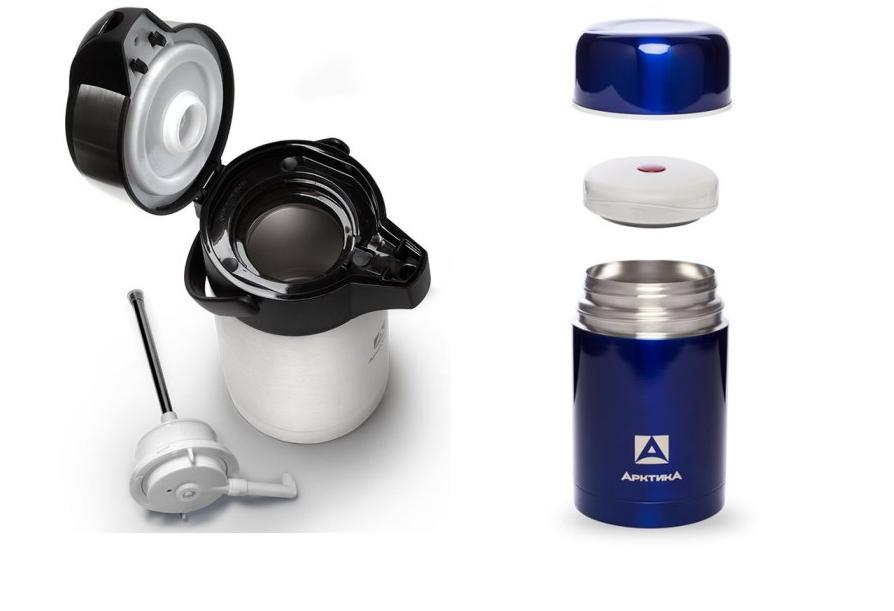 Но бывают и необычные модели. «Это, например, термосы-кружки с ситечком для отсеивания чаинок, облегченные термосы-бутылочки с поилкой — они предназначены для занятий спортом и активного образа жизни, — рассказывает Александр. — Также бывают термосы с пробкой-помпой, что удобно для домашнего использования. Встречаются термосы в виде кувшина с носиком или фляги с котелком. Последние позволяют нагревать жидкость на костре».