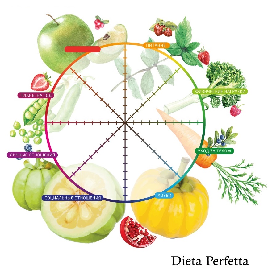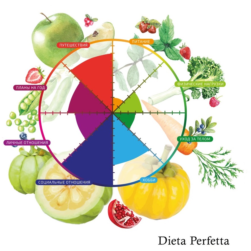 Как мы видим на примере, питание, физические нагрузки и уход за телом в последнее время были на 2–4–3 балла, что неудивительно, ведь праздники, холод и слой одежды скрывают все огрехи фигуры, зато хобби и прочие радости, как то: чтение с шоколадкой под пледом или вкусные выходные у друзей за городом, дают нам высокую удовлетворенность такими пунктами, как хобби, социальные отношения и путешествия.