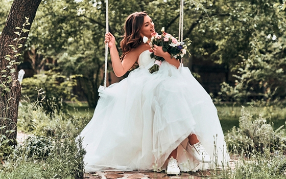 На собственную свадьбу, наконец, можно придти вообще без платья. «Дизайнеры каждый год выводят на подиум «невест» облаченных в брюки, брючные костюмы и комбинезоны, — говорит Наталья Полежай, дизайнер, основатель бренда и ателье индивидуального пошива «Polezhai». — Многие женщины не готовы затягиваться в тугой корсет, жертвуя своим комфортом, даже в день бракосочетания. Они желают чувствовать себя легко и раскованно. Брючные ансамбли выбирают невесты, которым хочется оригинальности, новизны. Те, для кого традиционное белое платье с фатой — слишком банально».
