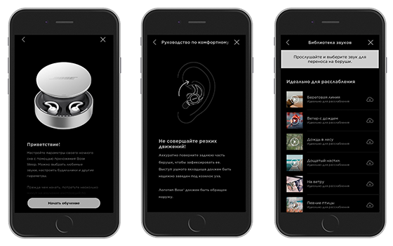 Опасения, что я буду чувствовать нечто чужеродное в ушах во время сна, оказались беспочвенными. Bose Sleepbuds достаточно плотно разместились в слуховом проходе, при этом я их совершенно не ощущала. Далее установила в приложении будильник, выбрала понравившиеся звуки и начала эксперимент. Сказать по правде, как заснула не помню. Помню, что отключилась под шум океана. Утром проснулась по будильнику. Bose Sleepbuds оказались на месте. Искать их на просторах своей кровати мне не пришлось. На удивление встала легко, очень даже бодрой и вполне отдохнувшей. И это в первый день! С учетом многодневного хронического недосыпа — отличный результат.