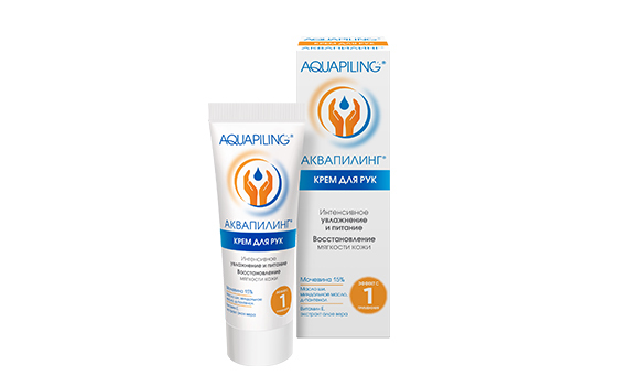 Крем для рук серии АКВАПИЛИНГ специально разработан для устранения утолщенной огрубевшей кожи, а также профилактики появления новых участков огрубевшей кожи.