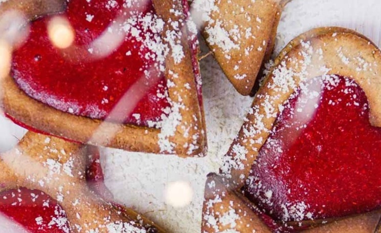 Почти такие же печенья предлагает премьер-министру из «Реальной любви» (2003 г) влюбленная в него помощница Натали. В фильме героя угощают шоколадными печеньями, ну а мы предлагаем приготовить его диетическую альтернативу — с мукой из гречки и миндаля и ягодным мармеладом.