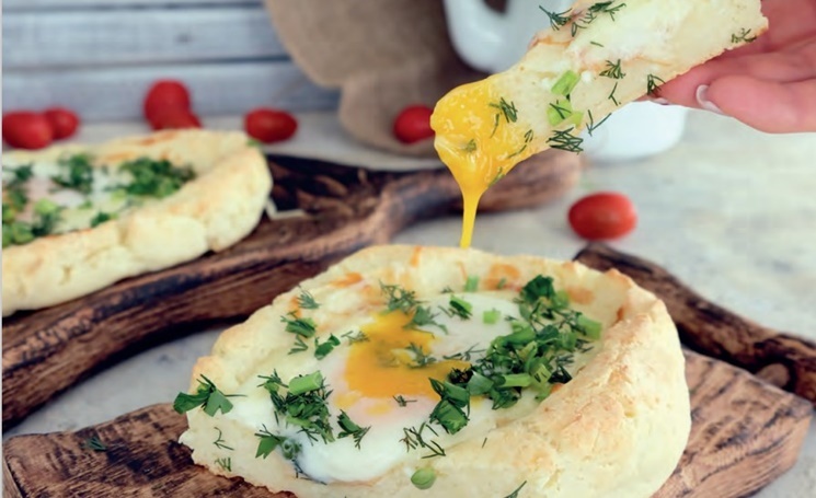 Ингредиенты (на 10 порций). Для теста: 1200 г муки, 350 г воды, 1 ч. л. соли, 50 мл растительного масла, 3–4 яйца. Начинка: 500 г сулугуни, 400 г сливочного масла, 1 ч. л. соли и еще чуть больше по необходимости.