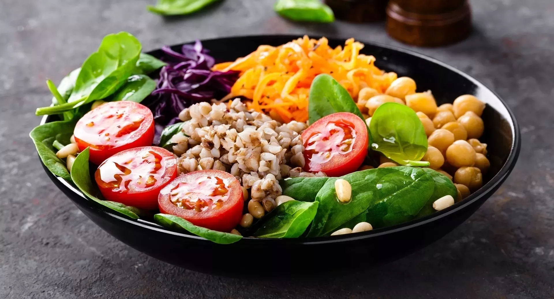 - Обед: 100 г гречки, 150 г салата с чечевицей и овощами, заправленного греческим йогуртом.