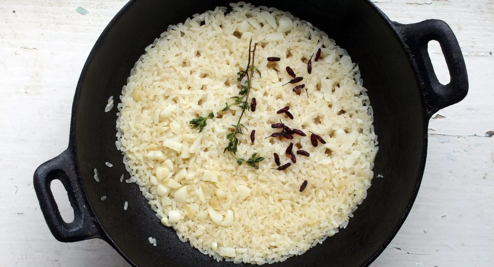 Для этого блюда выбирайте рассыпчатый рис, чтобы блюдо получилось структурным и ароматным.