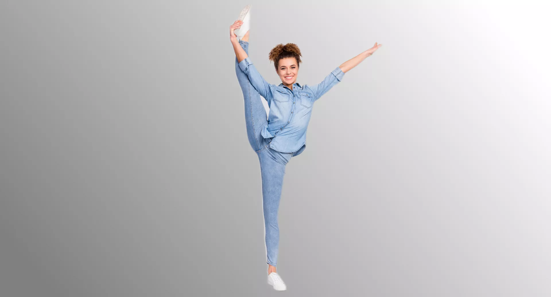 Дани Винкс, профессиональная акробатка и инструктор по растяжке, объясняет, как сделать шпагат стоя: «Вертикальный шпагат — это более сложная вариация шпагата, чем обычный шпагат на полу, ведь для этого требуется большая сила мышц ягодиц, чтобы поднять и удерживать вытянутую ногу в воздухе.