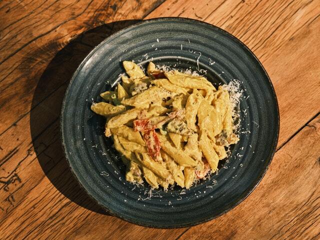Приготовьте пасту до состояния аль данте, чтобы она не была слишком мягкой. Заправьте оливковым маслом и лимонным соком. Это идеальный ароматный соус, богатый полезными жирами и антиоксидантами. Положив в макароны обжаренный тофу, вы добавите в блюдо хорошую порцию белка. Подавайте пасту с поджаренными и измельченными орехами, такими как арахис, кешью или фисташки. Это прекрасный источник ценных питательных веществ, белка и полезных жирных кислот. Кроме этого, орехи добавят макаронам приятной хрустящей текстуры.