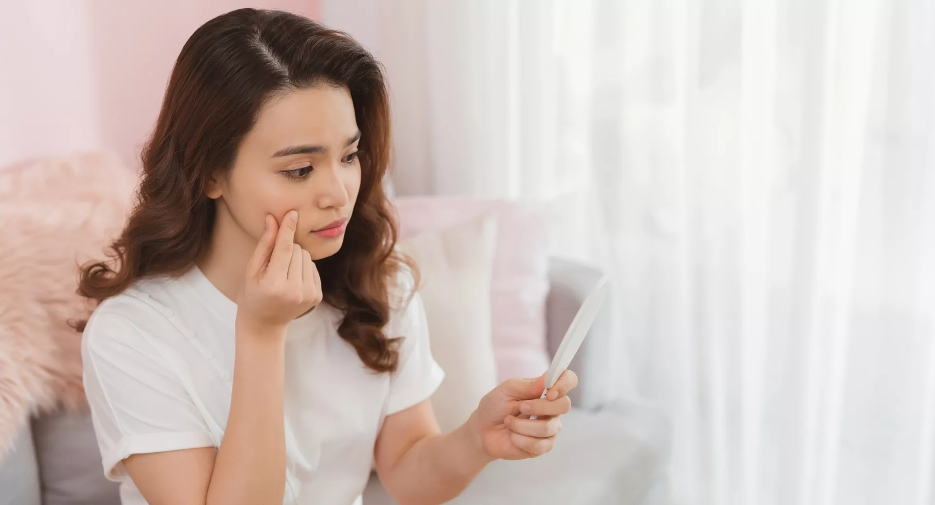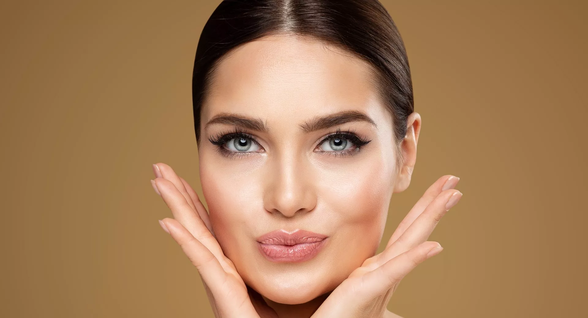 - Кончики пальцев прижмите к внешним уголкам глаз.