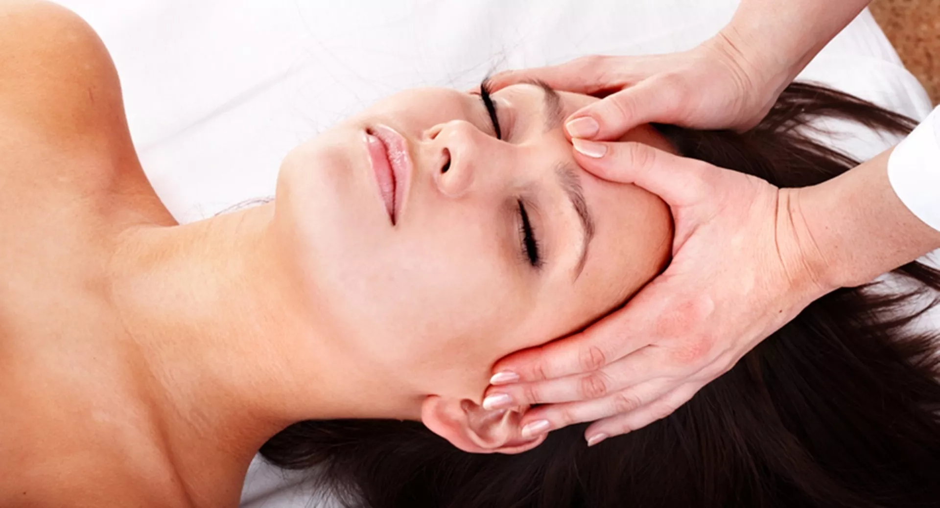- На середину лба положите кончики пальцев и зигзагообразными движениями помассируйте в направлении висков.