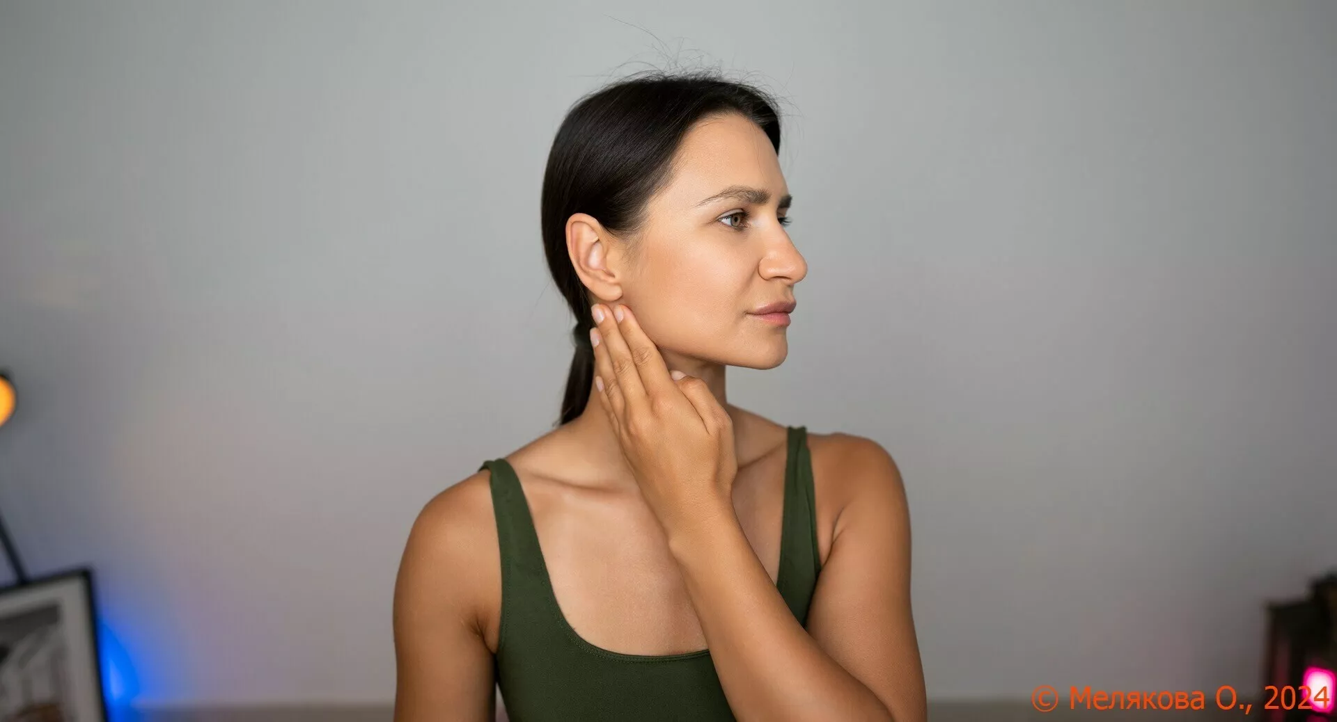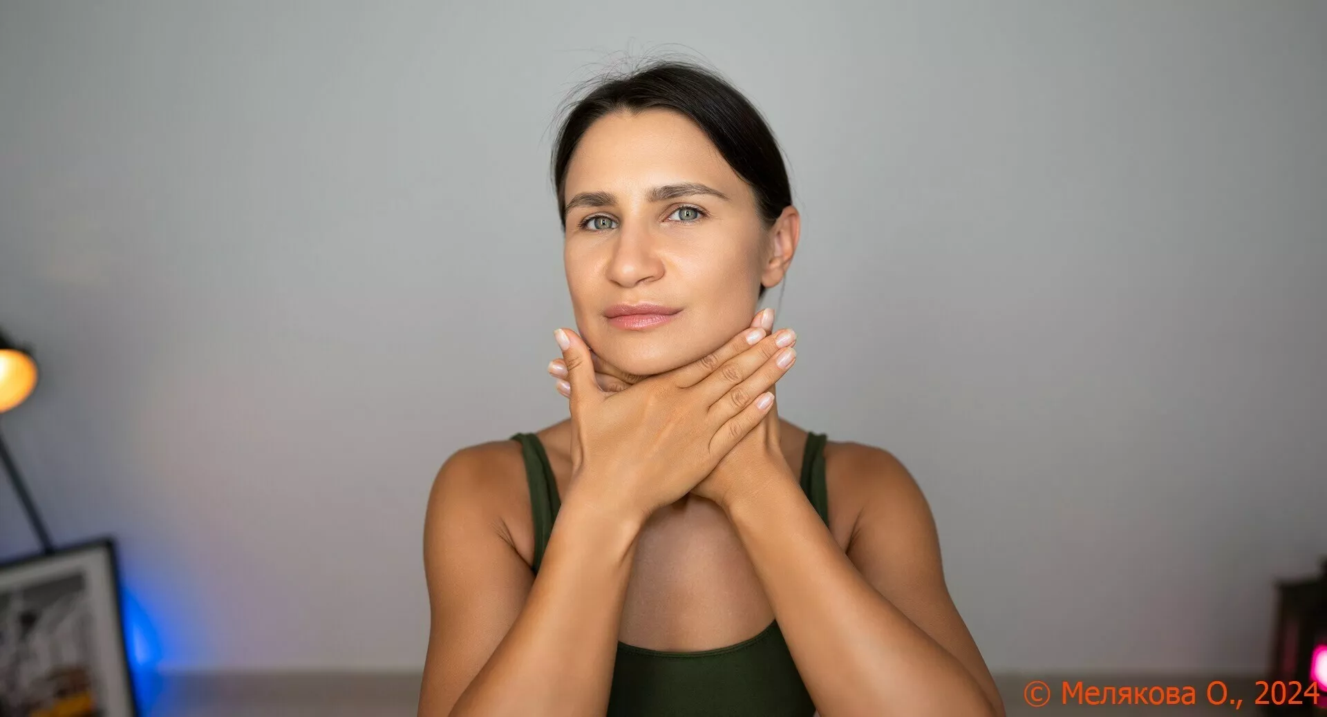4. Расположите ребра ладоней в подчелюстной области и «перетирайте» ткани.