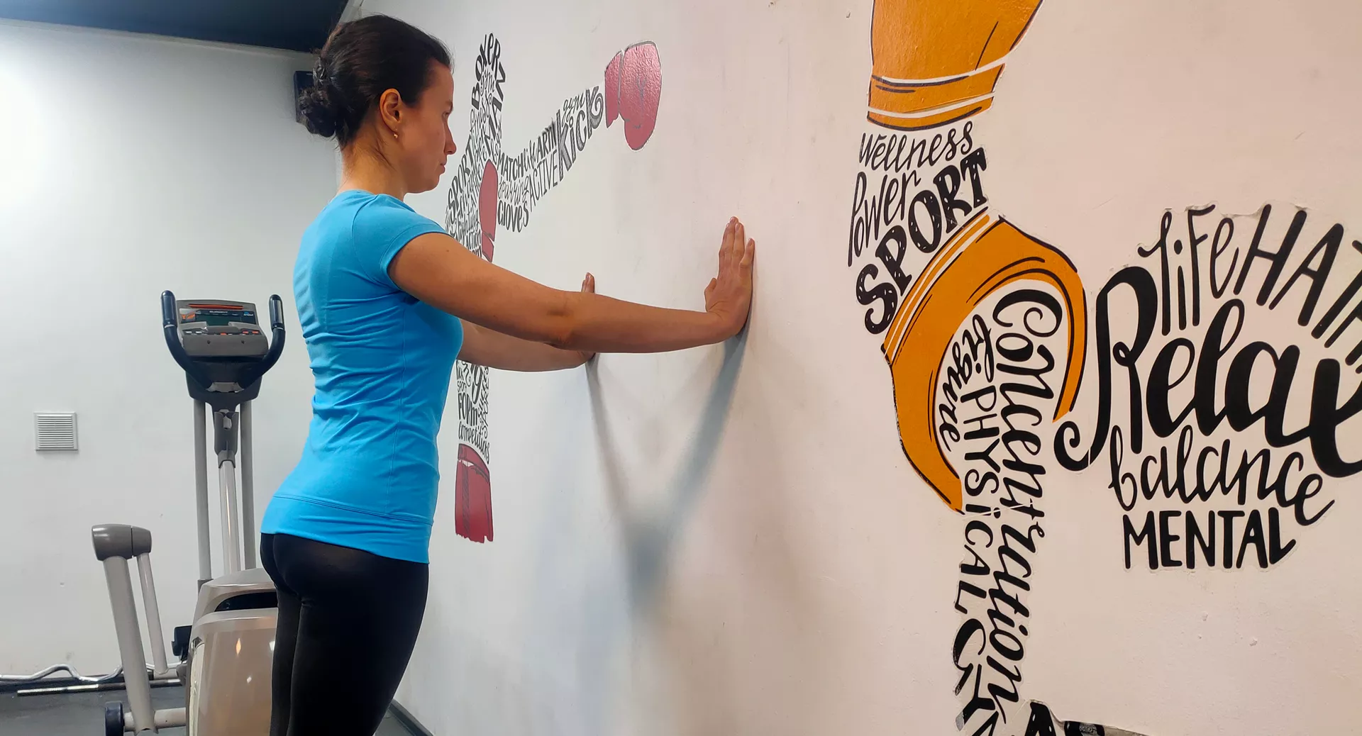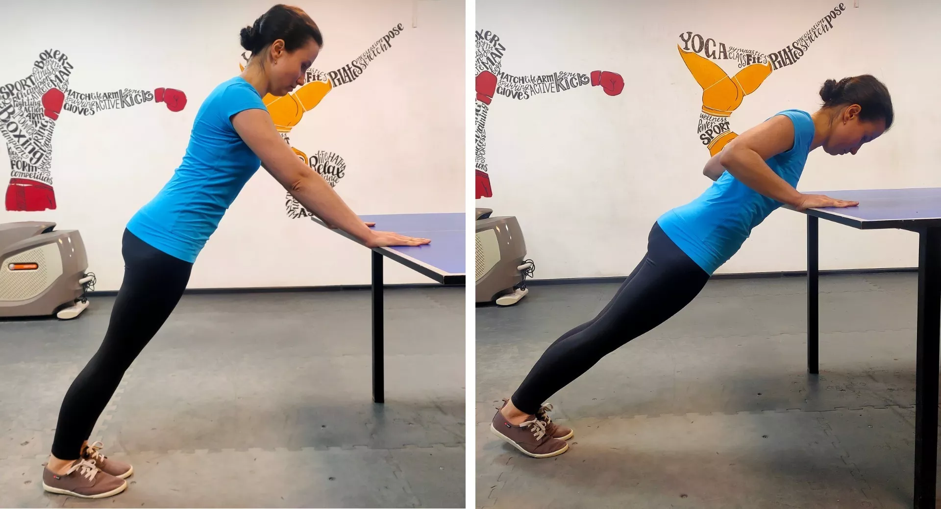 - вертикальные отжимания, где руки упираются о возвышенный упор: начать нужно с отжимания от стены, закончить — отжиманием от невысокой платформы на полу;
