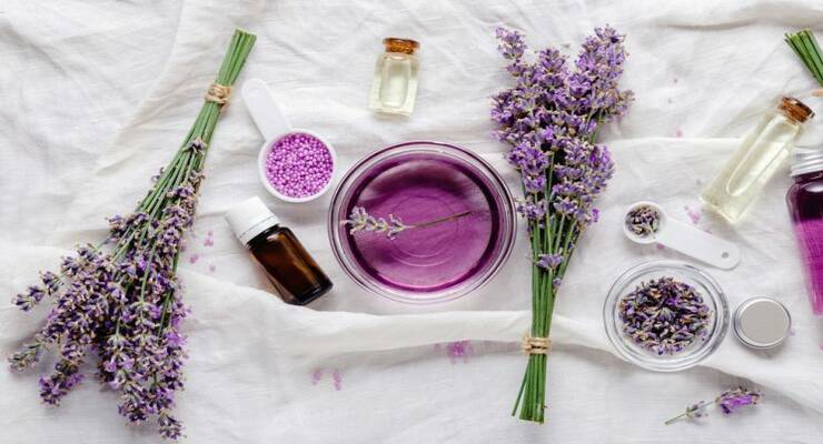 Является наиболее часто используемым в косметике эфирным маслом. Это вещество может помочь и при ожогах кожи. Исследование, проведенное на животных, показало, что лавандовое масло способствует заживлению ран на ранней стадии, ускоряя образование грануляционной ткани (ткани заживающей поверхности кожи) и стимулируя синтез коллагена.