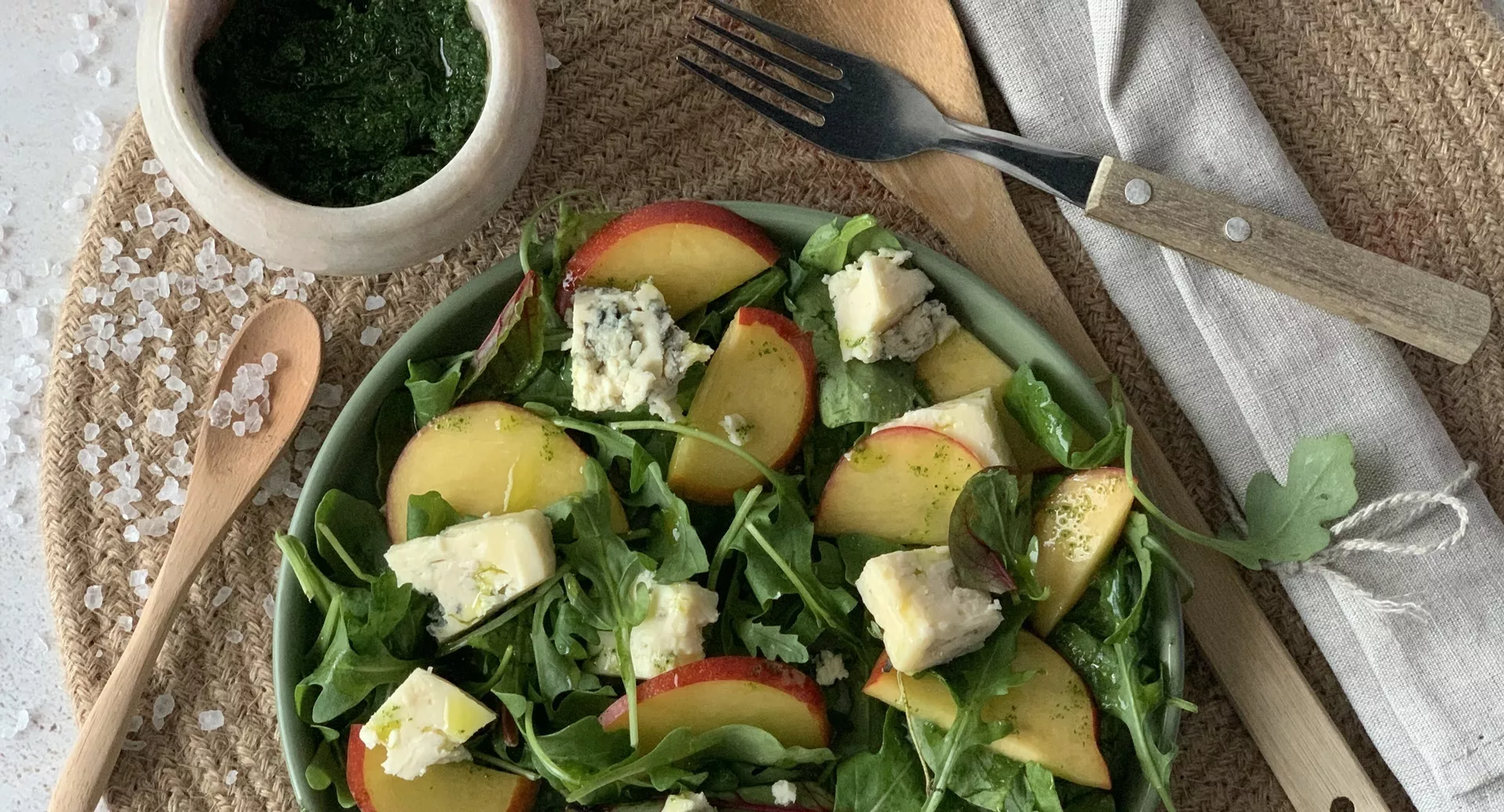 4. Салат с запеченным персиком и голубым сыром
