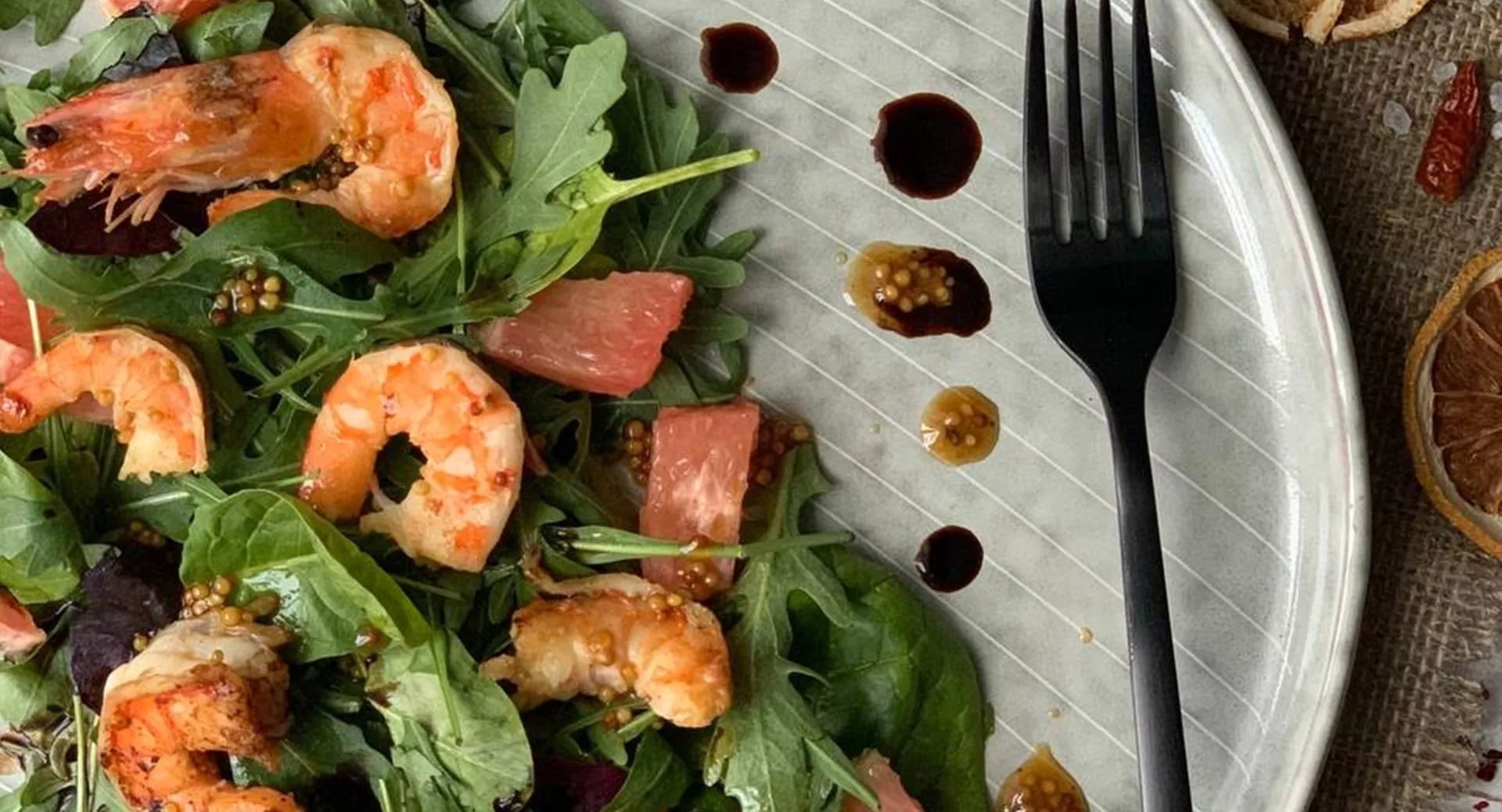 6. Салат с карамельными креветками и грейпфрутом
