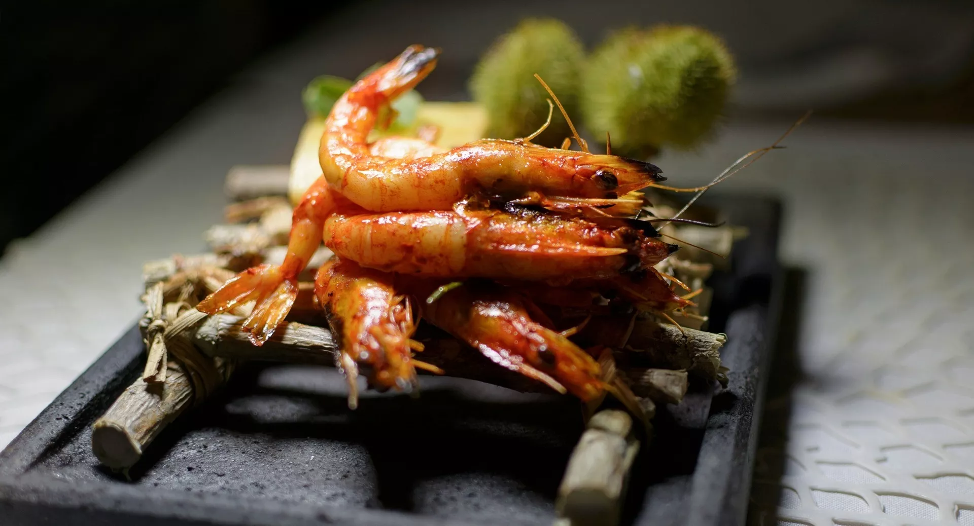 Вы непременно оцените пикантное сочетание вкуса карамельных креветок и кисловато-горько-сладкого грейпфрута в этом блюде по рецепту Давиде Димитри.
