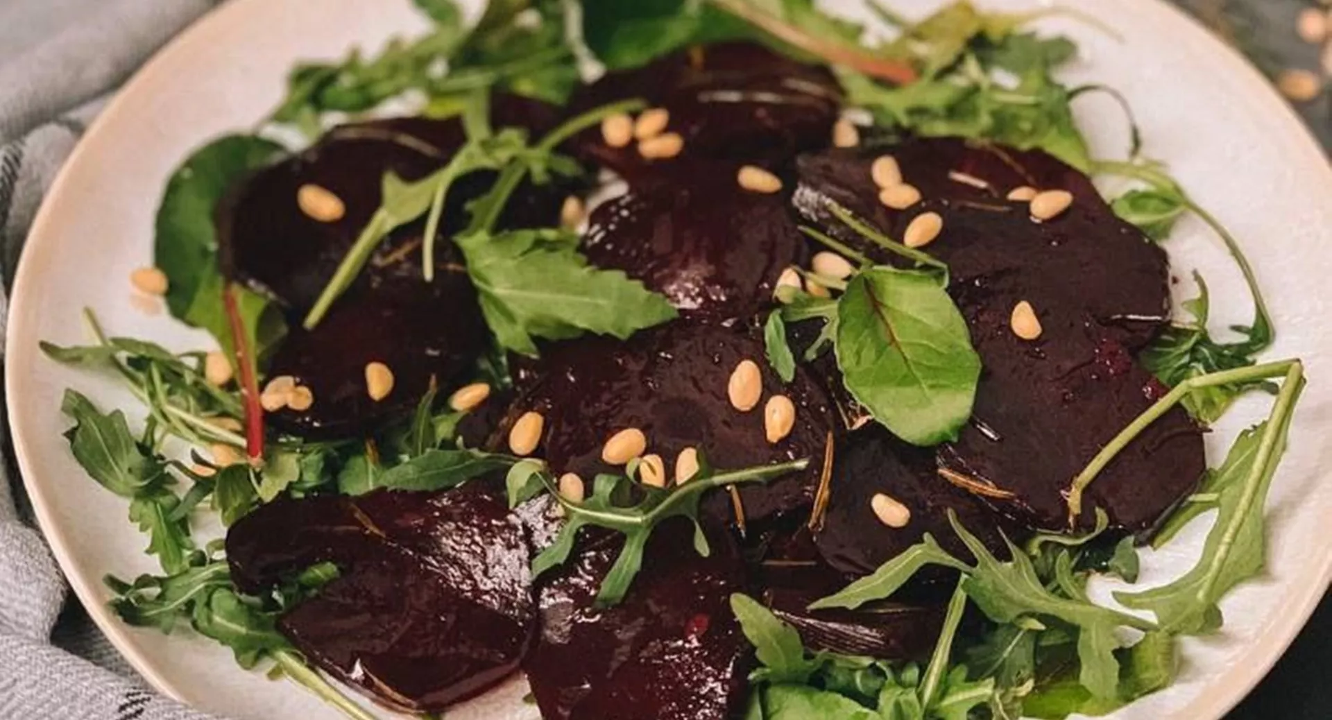 10. Салат с печеной свеклой, салатным миксом и орешками