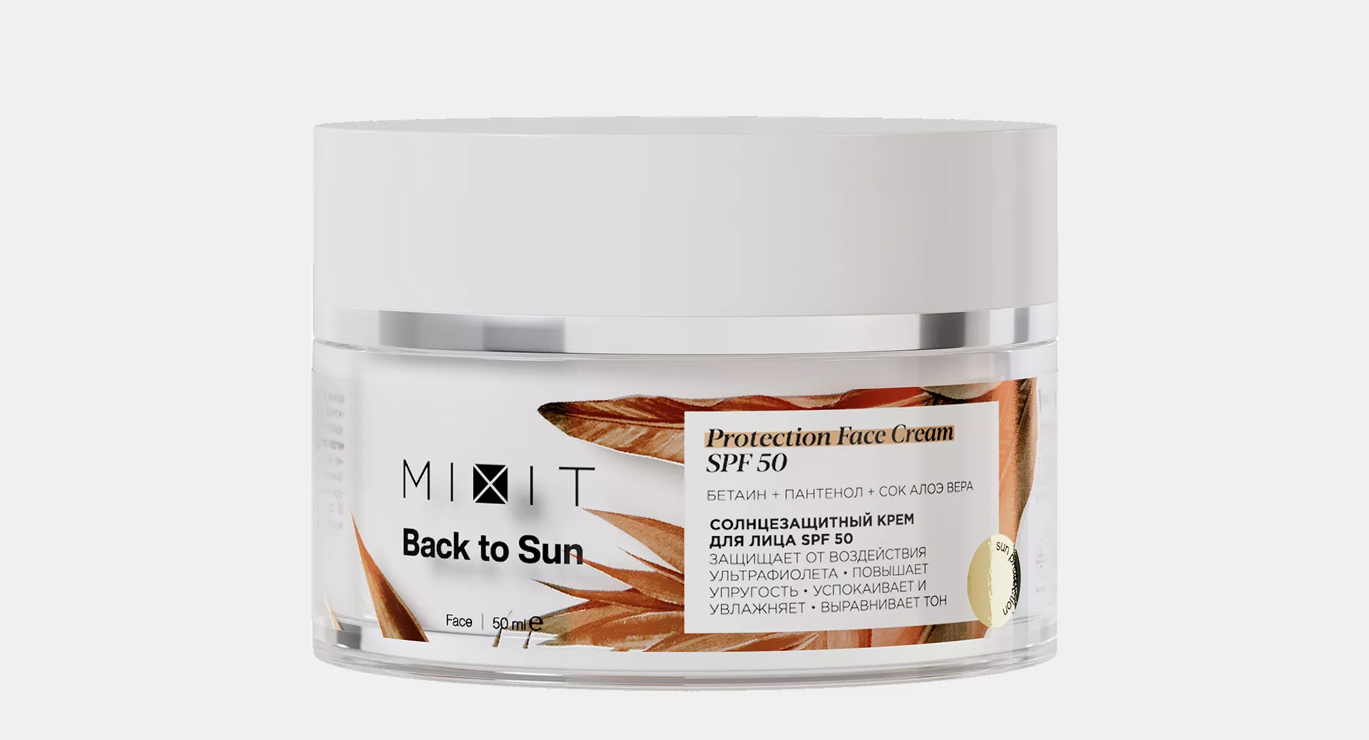 На фото: Солнцезащитный крем для лица MIXIT Back To Sun SPF 50, 770 руб.